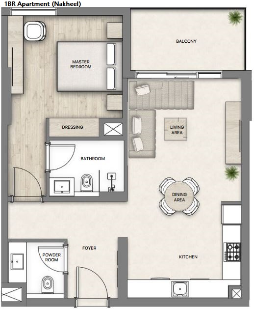 1 BR APARTMENT (NAKHEEL) 1,452,751 AED 1 1 740 sqft Q2 / 2028