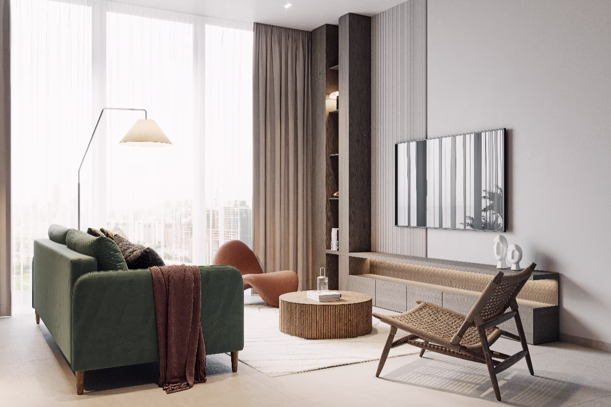 AUREL1A Residence, reflects the building’s warm and radiant character, creating an inviting and sophisticated environment where comfort and well-being merge. Nestled in Dubai Sports City, it offers seamless access via Sheikh Mohammed Bin Zayed Road (E311) and Al Khail Road (E44), with just 13 minutes to Global Village, 23 minutes to Burj Khalifa, and 25 minutes to DXB and DWC. The interiors feature a vibrant yet soothing palette of khaki, sunset oranges, and calming neutrals, balancing energy with serenity across both private apartments and communal spaces. Designed for modern living, AUREL1A offers studios to 3.5-bedroom apartments equipped with Smart Home Systems and premium amenities.