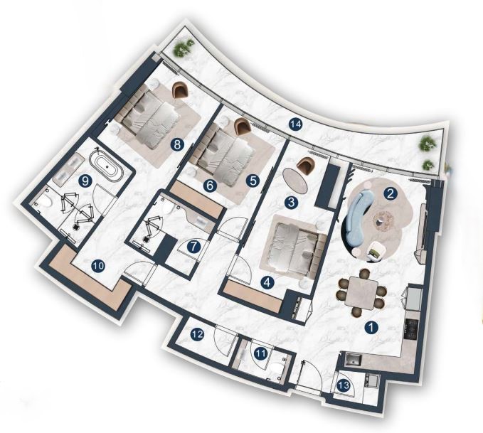 | 3 BR APARTMENT | 4,435,522 AED | 3 | 3 | 1694 sqft | Q4 / 2028 |