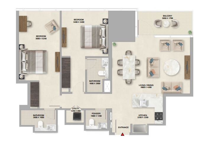 | 2 BR APARTMENT | 4,752,080 AED | 2 | 2 | 1188 sqft | Q2 / 2031 |