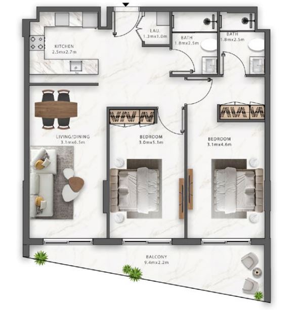 | 2 BR APARTMENT | 1,358,000 AED | 2 | 2 | 1136 sqft | Q4/2027 |