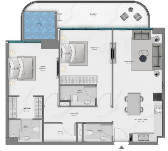 | 2 BR + STUDY APARTMENT | 3,030,016 AED | 2 | 2 | 1213 sqft | Q4 / 2028 |