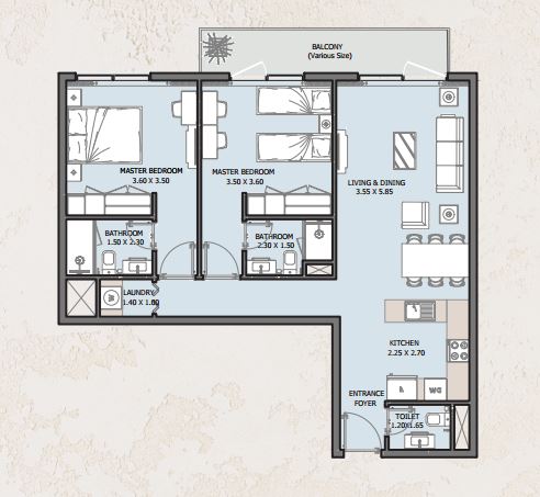 | 2 BR APARTMENT | 1,200,000 AED | 2 | 2 | 980 sqft | Q4 / 2028 |