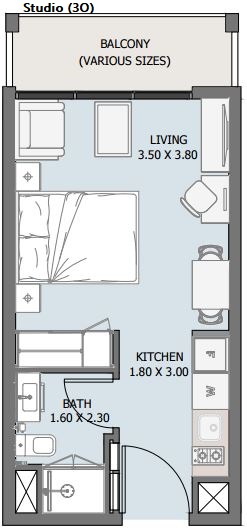 | STUDIO (3O) | 549,827 AED | 1 | 1 | 325 sqft | Q4 / 2027 |