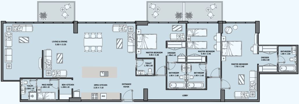 | 3 BR PENTHOUSE | 6,188,000 AED | 3 | 3 | 2598 sqft | Q2 / 2029 |