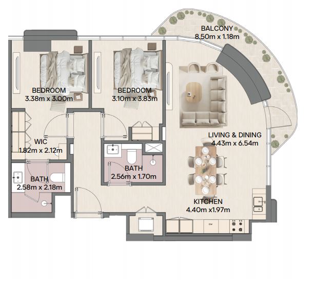 | 2 BR APARTMENT (TOWER 2) | 2,581,000 AED | 2 | 2 | 1087 sqft | Q3 / 2028 |